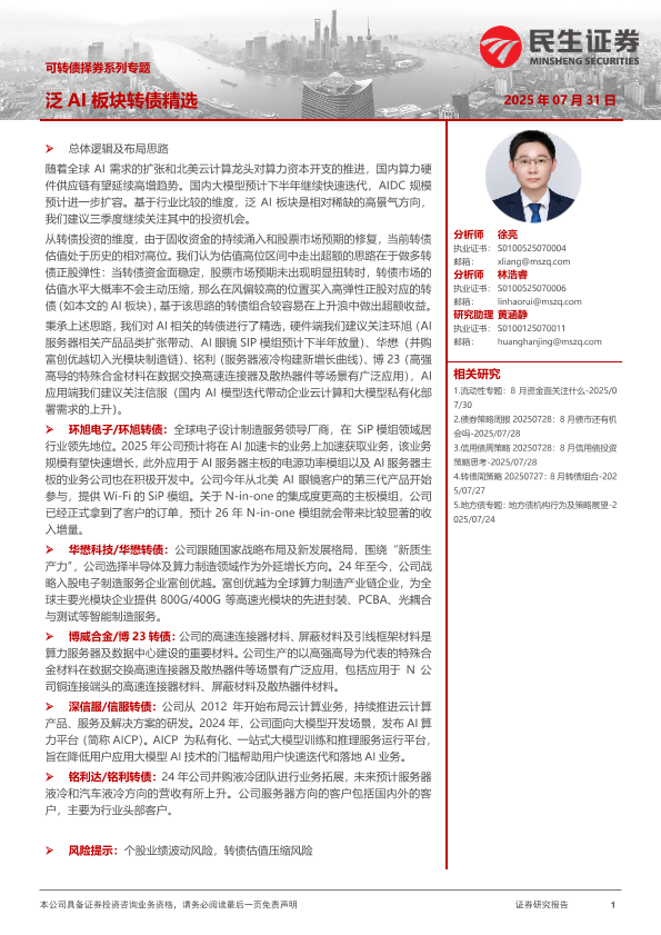 【民生证券】【202507】可转债择券系列专题:泛AI板块转债精选-14页