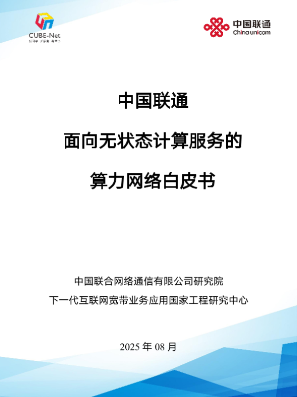 【中国联合网络通信有限公司研究院&下一代互联网宽带业务应用国家工程研究中心&中讯邮电咨询设计院有限公司&联通智能制造科技产业(广东)有限公司&紫金山实验室&华为技术有限公司&中兴通讯股份有限公司&浪潮通信技术有限公司】【202508】中国联通面向无状态计算服务的算力网络白皮书-42页