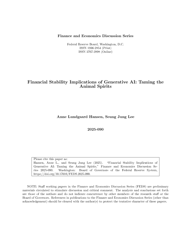 【Federal Reserve Board】【202509】Financial Stability Implications of Generative AI Taming the Animal Spirits-71页