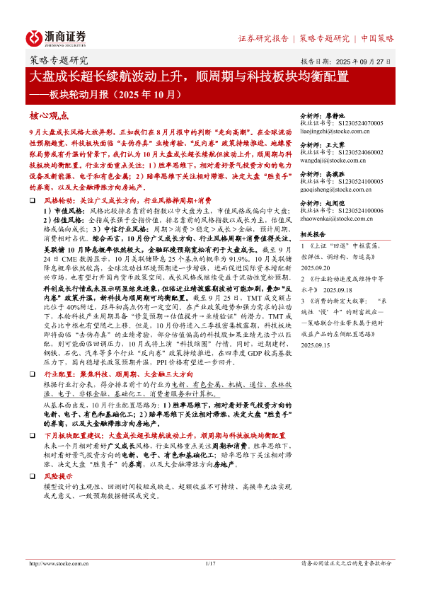 【浙商证券】【202509】大盘成长超长续航波动上升,顺周期与科技板块均衡配置-17页