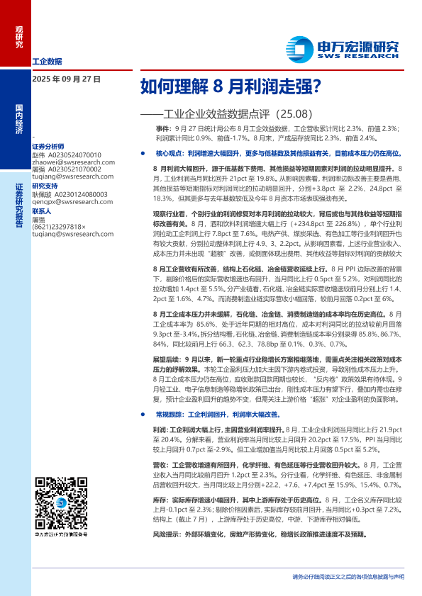 【申万宏源】【202509】工业企业效益数据点评:如何理解8月利润走强?-10页