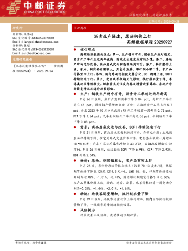 【中邮证券】【202509】高频数据跟踪:沥青生产提速,原油铜价上行-13页