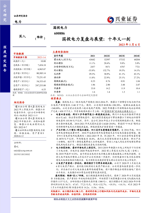 【兴业证券】【20230106】国投电力复盘与展望:十年又一剑-30页