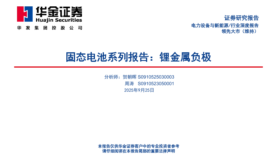 【华金证券】【202509】固态电池系列报告:锂金属负极-46页