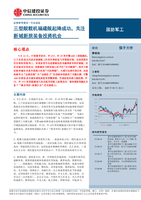 【中信建投证券】【202509】国防军工行业动态:三型舰载机福建舰起降成功,关注新域新质装备投资机会-27页