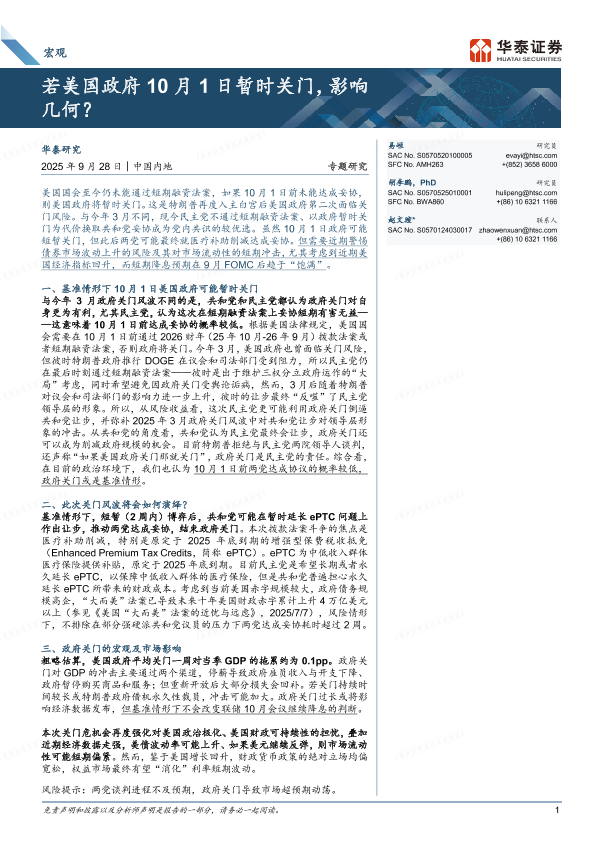 【华泰证券】【202509】若美国政府10月1日暂时关门,影响几何?-10页