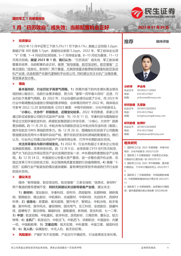 【民生证券】【20230109】国防军工1月展望报告:1月“日历效应”或失效;当前配置机会正好-16页