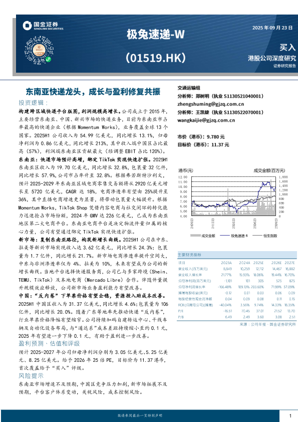 【国金证券】【202509】极兔速递-W(01519.HK)东南亚快递龙头,成长与盈利修复共振-33页