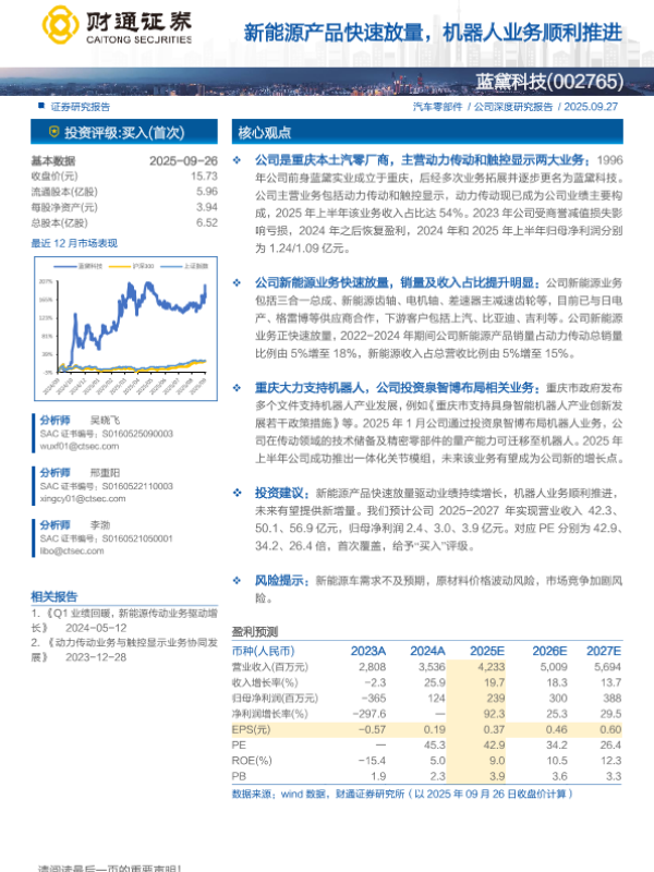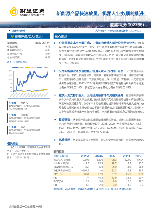 【财通证券】【202509】新能源产品快速放量,机器人业务顺利推进-18页