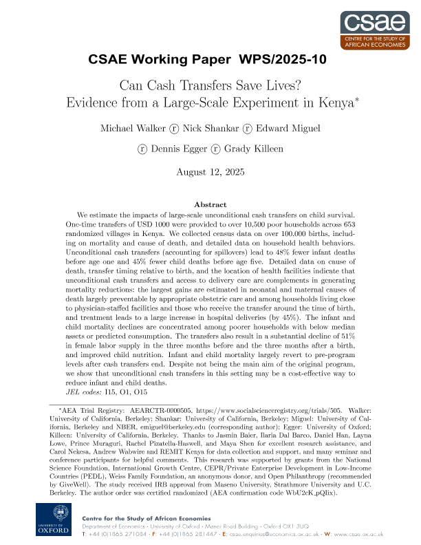 【Centre for the Study of African Economies&Department of Economics. University of Oxford】【202508】Can Cash Transfers Save Lives? Evidence from a Large-Scale Experiment in Kenya-76页
