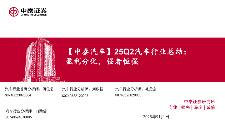 【中泰证券】【202509】25Q2汽车行业总结:盈利分化,强者恒强-43页