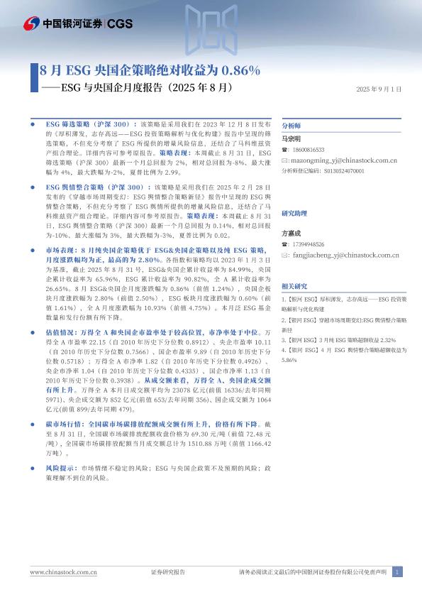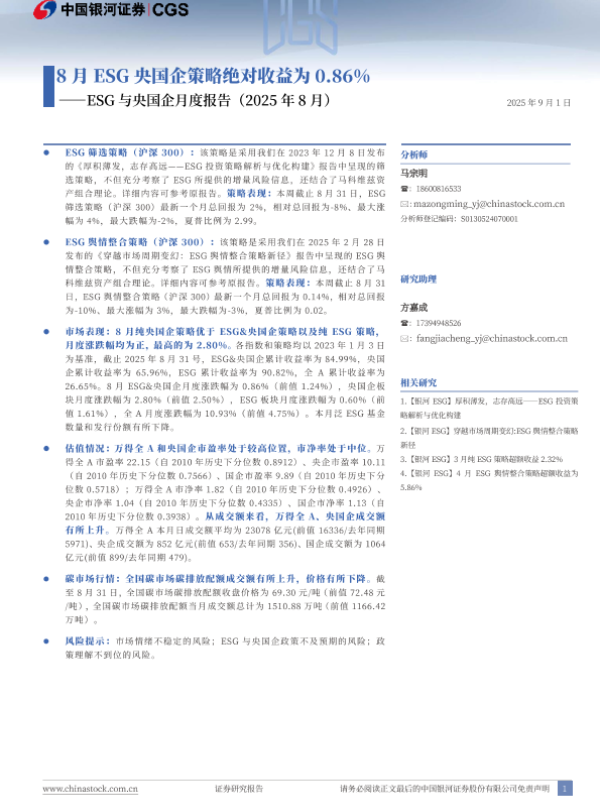策略报告 ESG投资 央企国企 碳市场 市场分析