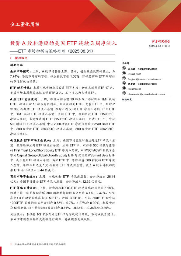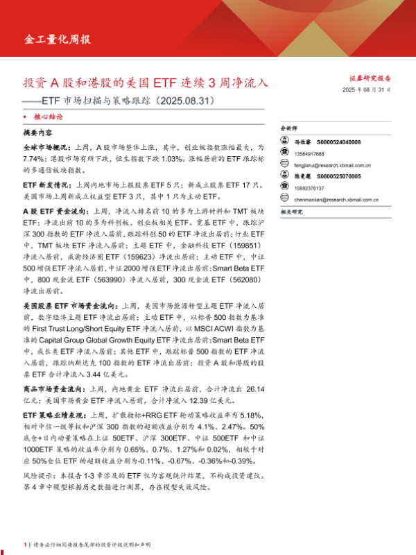 【西部证券】【202508】ETF市场扫描与策略跟踪:投资A股和港股的美国ETF连续3周净流入-21页