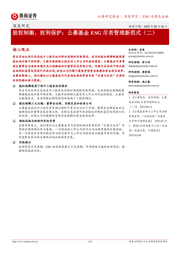 【浙商证券】【202509】股权制衡,权利保护:公募基金 ESG尽责管理新范式(二)-16页