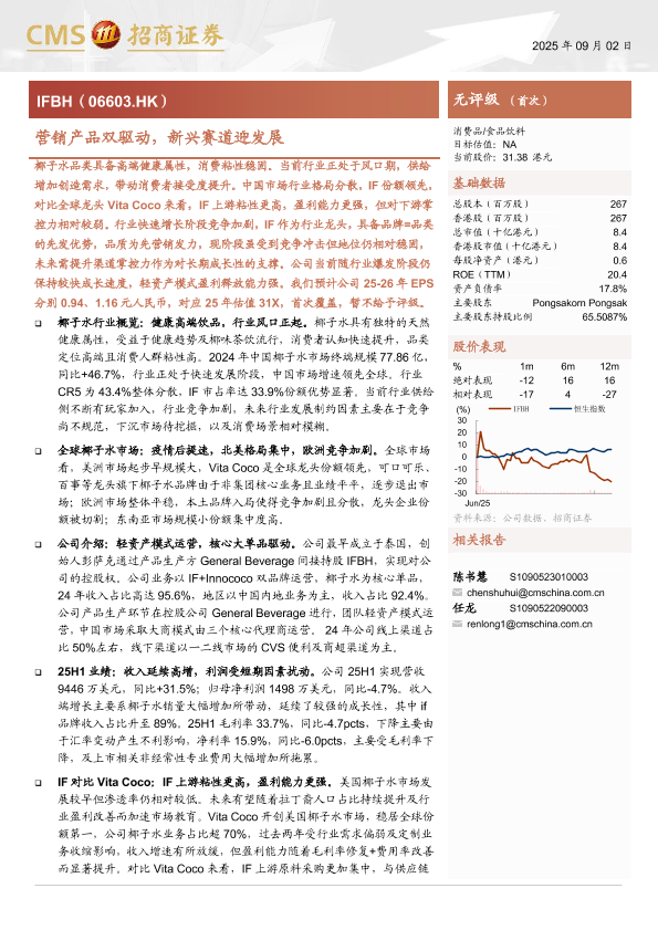 椰子水 消费饮料 公司研究 行业研究 投资建议