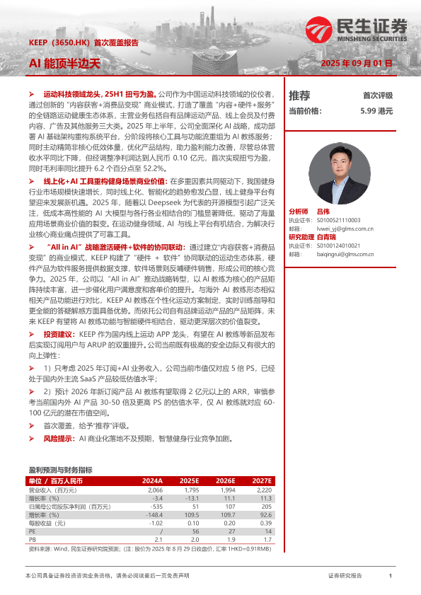 【民生证券】【202509】KEEP(3650.HK)首次覆盖报告 AI能顶半边天-25页