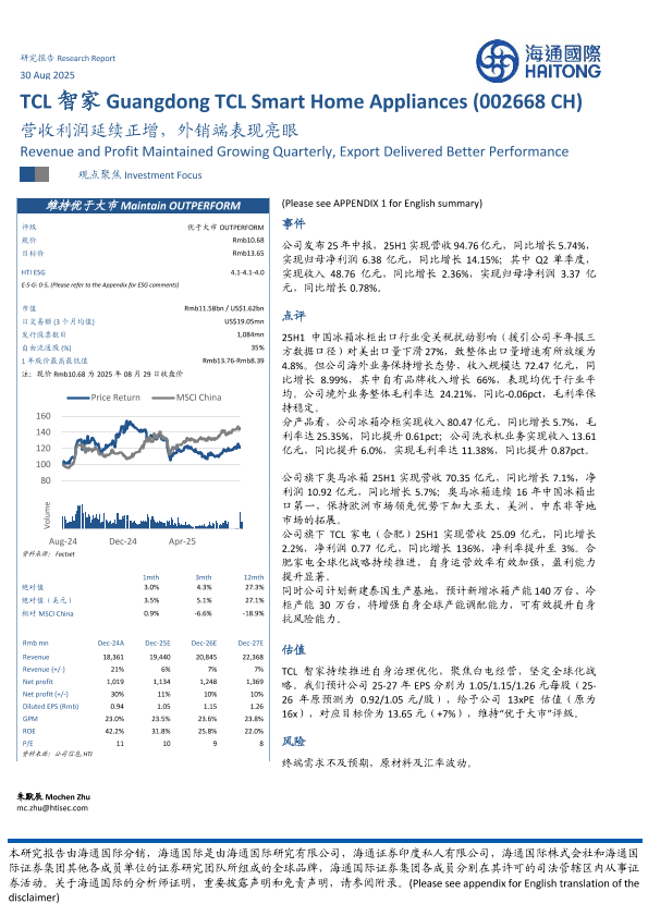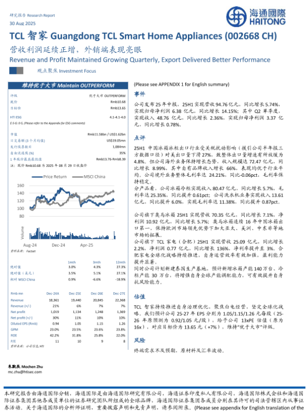 【海通国际】【202508】TCL智家营收利润延续正增,外销端表现亮眼-12页