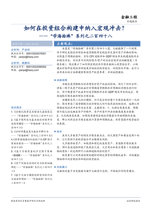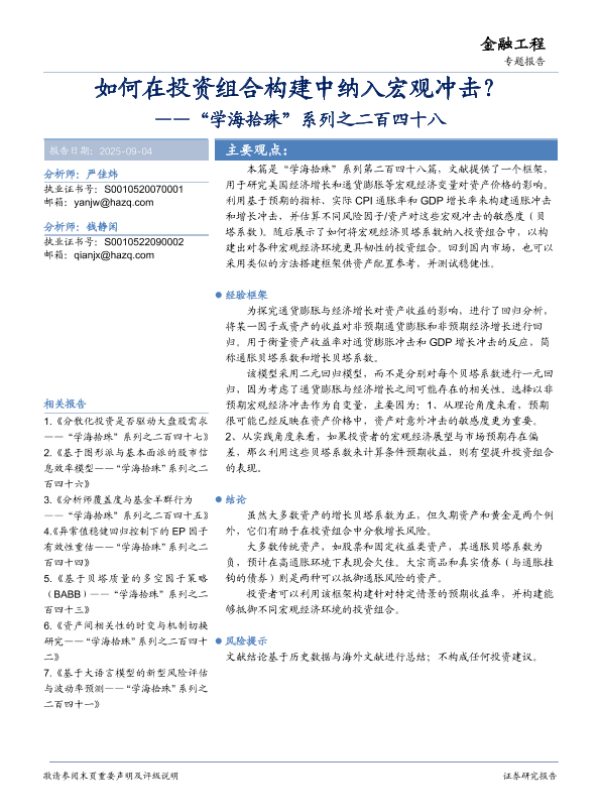 【华安证券】【202509】“学海拾珠”系列之二百四十八:如何在投资组合构建中纳入宏观冲击?-19页