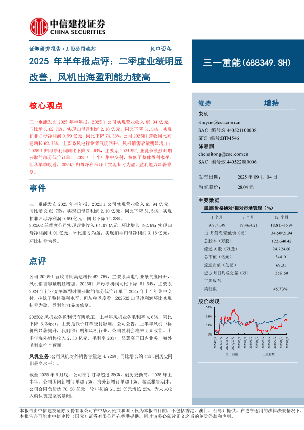 【中信建投证券】【202509】2025年半年报点评:二季度业绩明显改善,风机出海盈利能力较高-13页