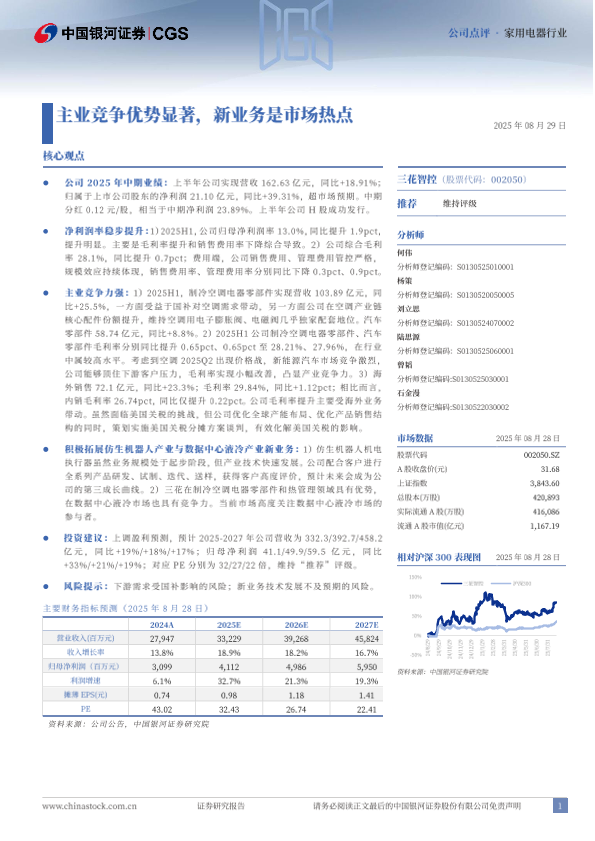 【银河证券】【202508】三花智控(002050)主业竞争优势显著,新业务是市场热点-12页
