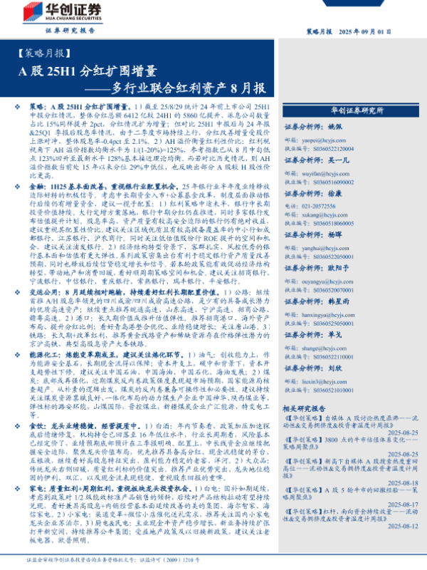 【华创证券】【202509】多行业联合红利资产8月报:A股25H1分红扩围增量-63页