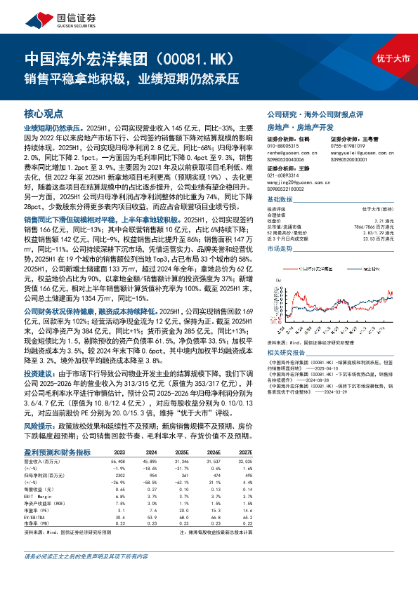【国信证券】【202504】中国海外宏洋集团(00081.HK)销售平稳拿地积极,业绩短期仍然承压-10页