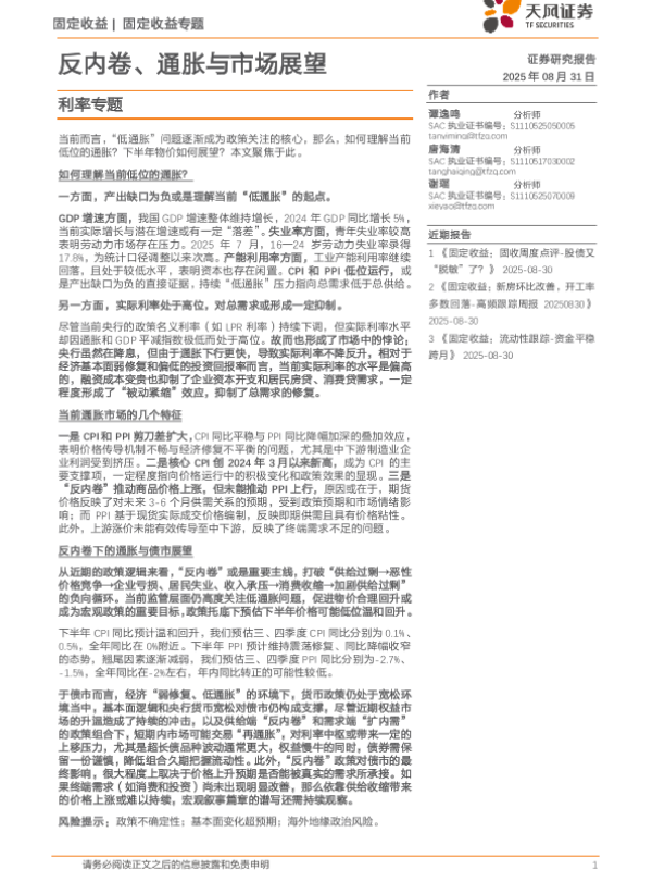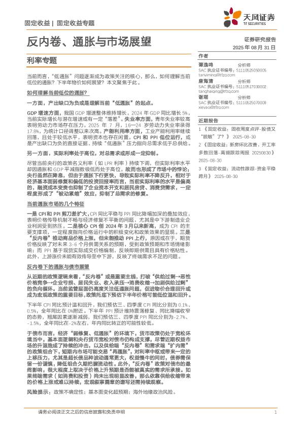 【天风证券】【202508】反内卷、通胀与市场展望-14页