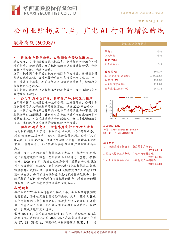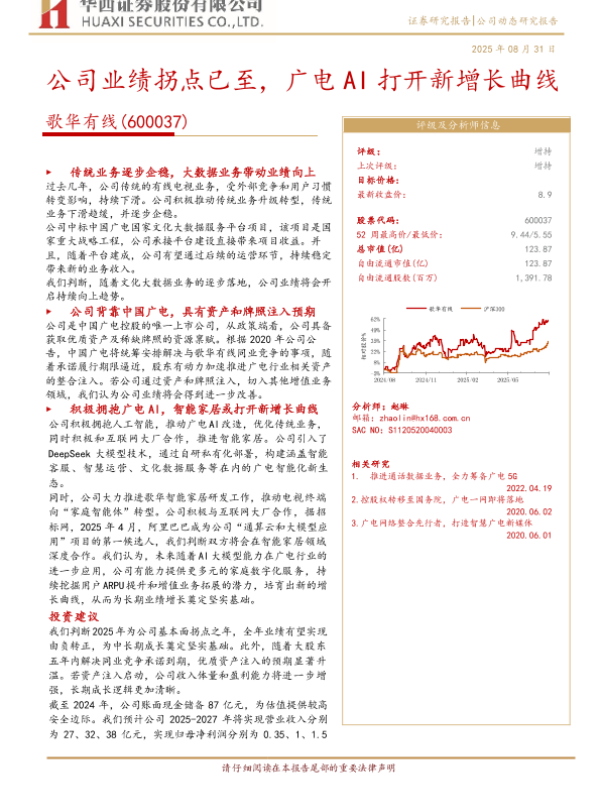 【华西证券】【202508】歌华有线(600037)公司业绩拐点已至,广电AI打开新增长曲线-15页