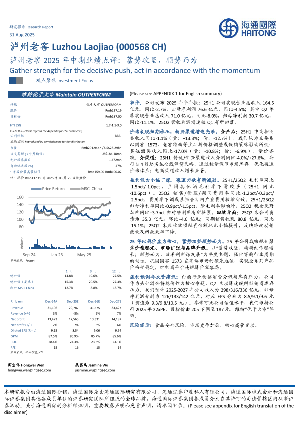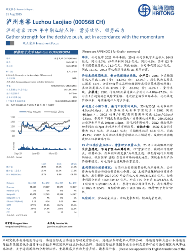 【海通国际】【202508】泸州老窖2025年中期业绩点评:蓄势攻坚,顺势而为-12页