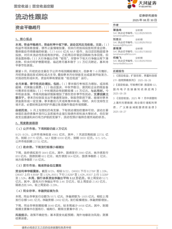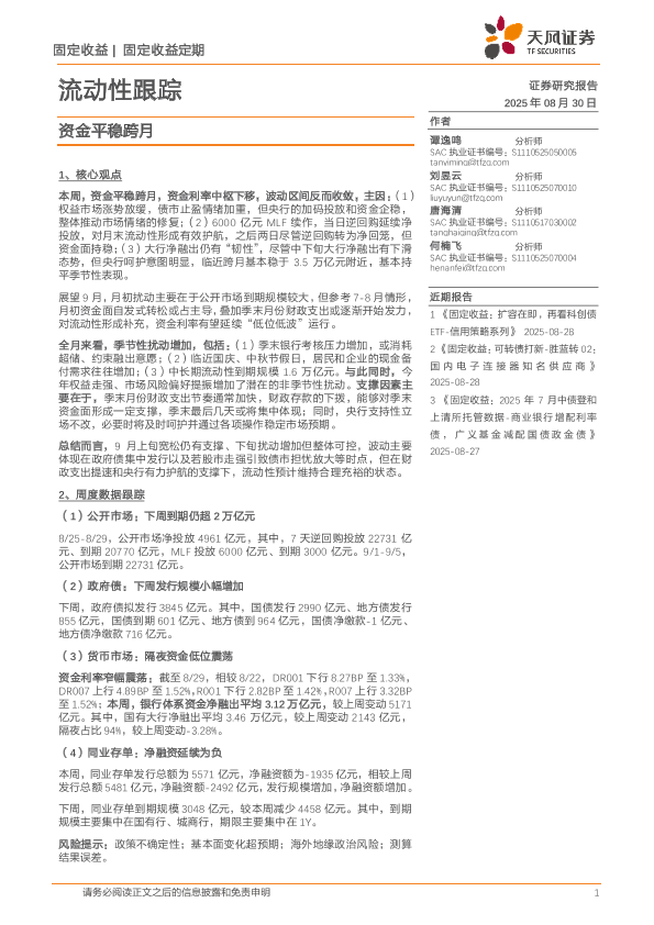 【天风证券】【202508】流动性跟踪:资金平稳跨月-22页