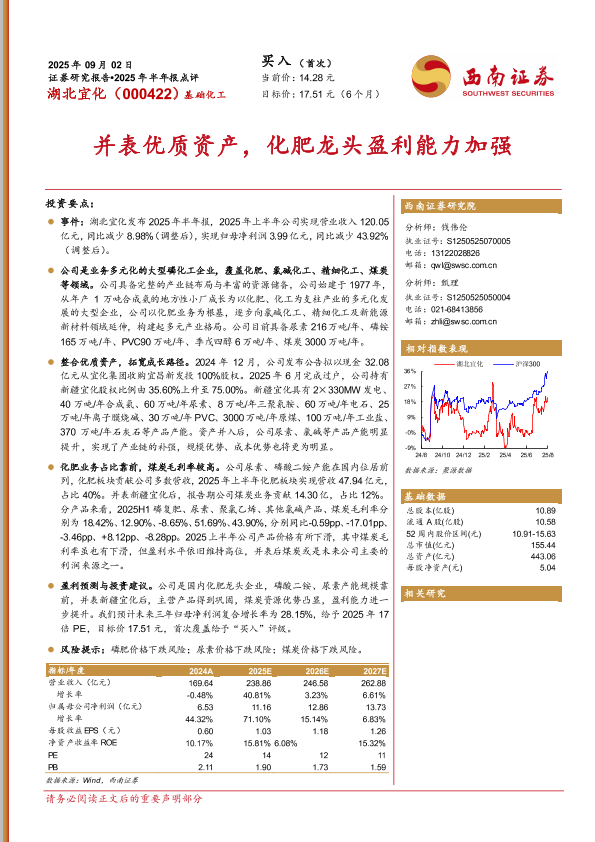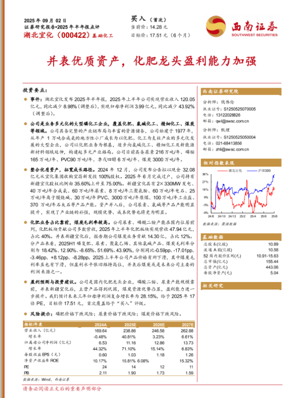 【西南证券】【202509】湖北宜化2025年半年报点评:并表优质资产,化肥龙头盈利能力加强-13页