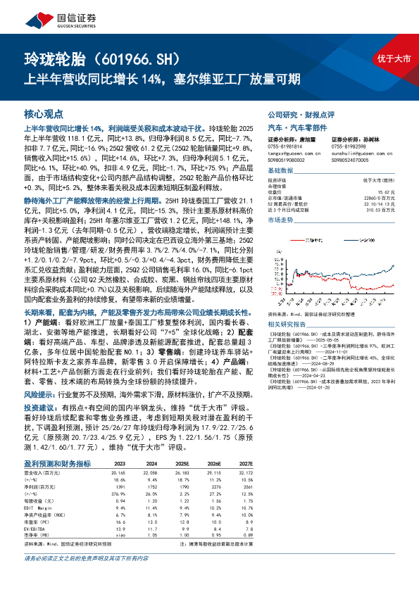 【国信证券】【202509】优于大市 玲珑轮胎(601966.SH)上半年营收同比增长 14%,塞尔维亚工厂放量可期-11页