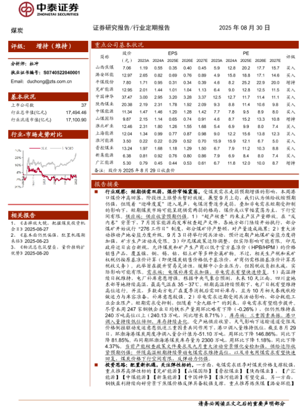 【中泰证券】【202508】煤炭行业:煤价下行空间有限,把握配置机遇期-23页