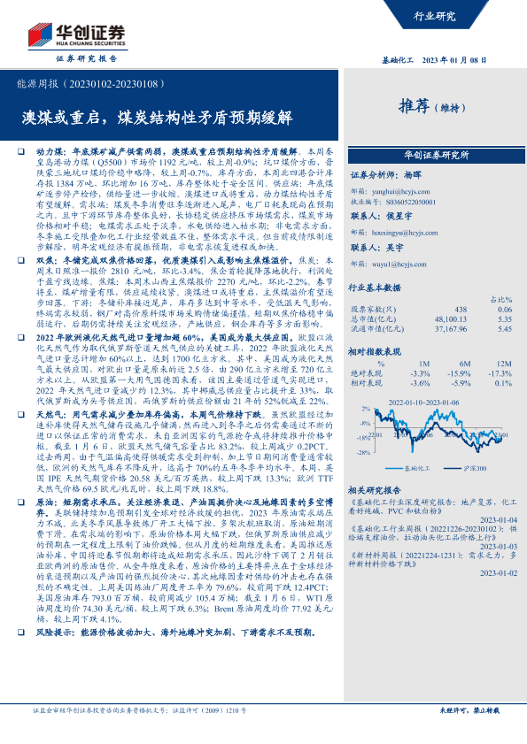 【华创证券】【20230108】基础化工行业能源周报:澳煤或重启,煤炭结构性矛盾预期缓解-23页