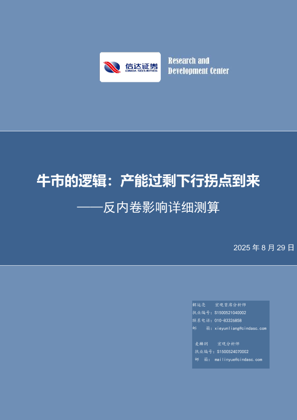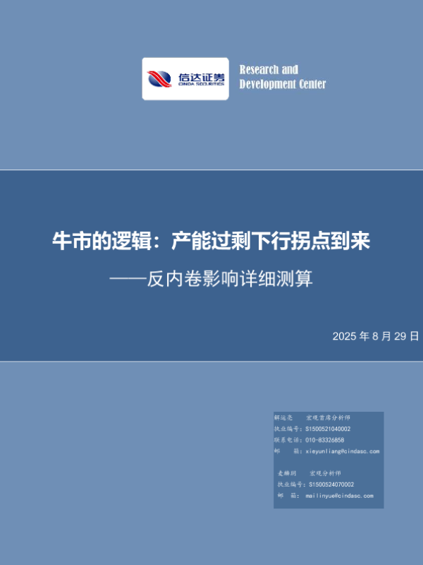 【信达证券股份有限公司 CINDA SECUR IT IES CO.<D】【202508】牛市的逻辑:产能过剩下行拐点到来——反内卷影响详细测算-26页