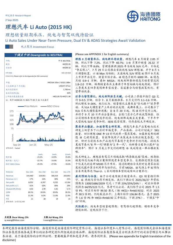 【海通国际】【202509】理想销量短期承压,纯电与智驾双线待验证-12页