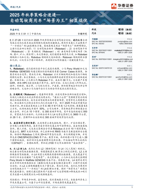 【华泰证券】【202509】科技/汽车2025年秋季策略会速递:自动驾驶商用车“场景为王”初显端倪-19页