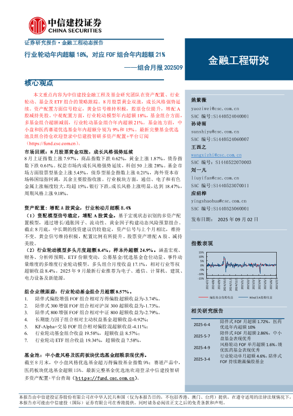 【中信建投证券】【202509】行业轮动年内超额18%,对应FOF组合年内超额21%——组合月报 202509-23页