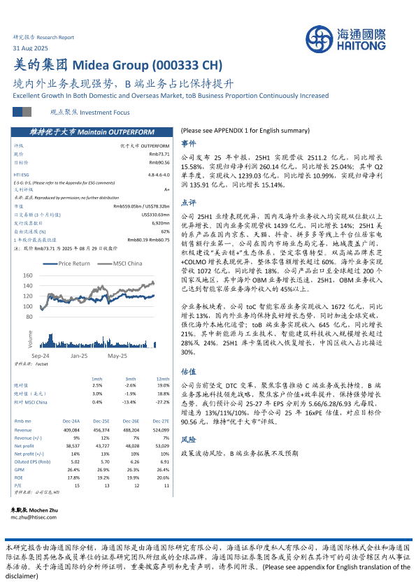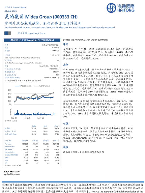 【海通国际】【202508】美的集团(000333)境内外业务表现强势,B端业务占比保持提升-12页