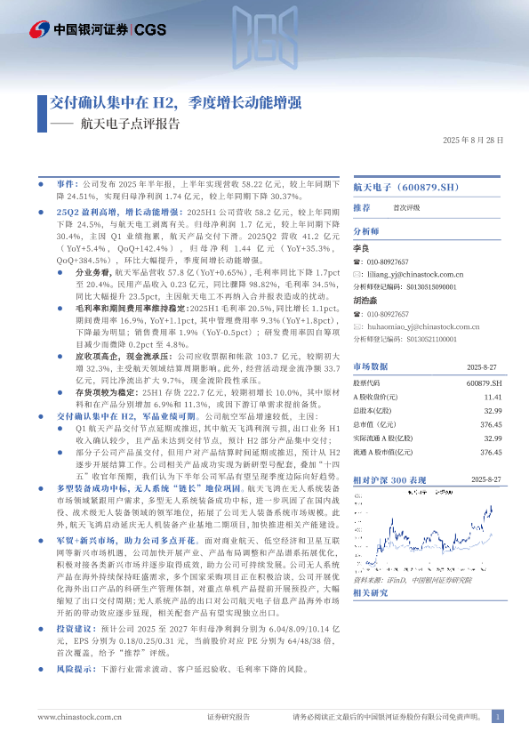 【银河证券】【202508】交付确认集中在 H2,季度增长动能增强—— 航天电子点评报告-11页