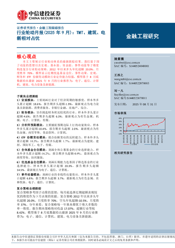 【中信建投证券】【202508】行业轮动月报(2025年9月):TMT、建筑、电 新相对占优-14页