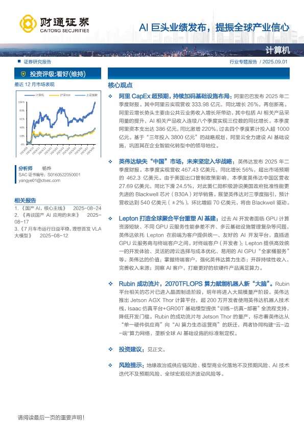 【财通证券】【202509】计算机行业:AI巨头业绩发布,提振全球产业信心-16页