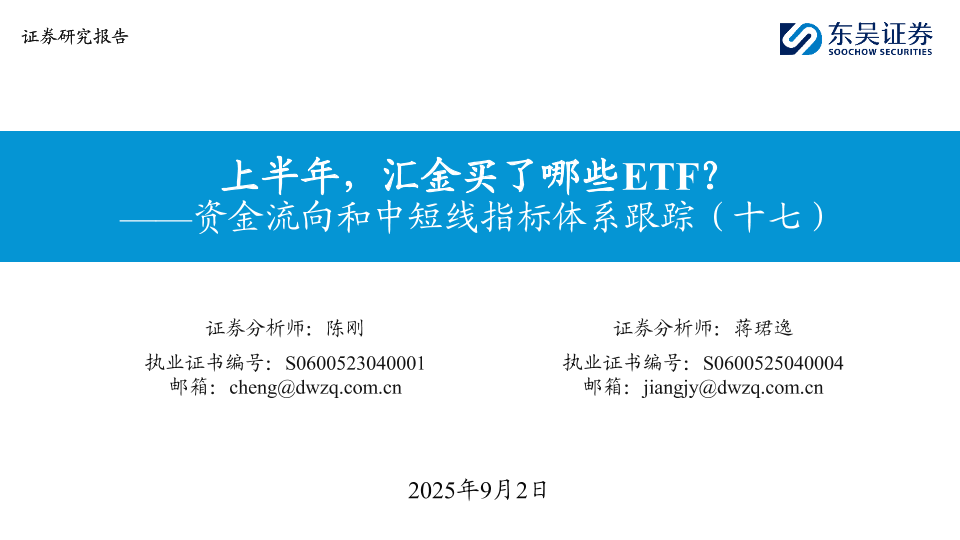 【东吴证券】【202509】资金流向和中短线指标体系跟踪(十七):上半年,汇金买了哪些ETF?-32页