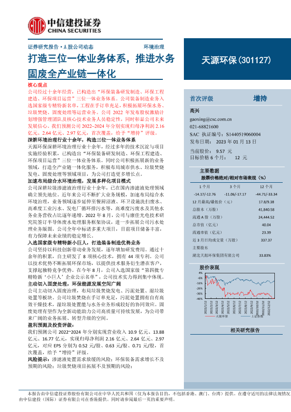 【中信建投证券】【20230113】天源环保-301127-打造三位一体业务体系,推进水务固废全产业链一体化-18页