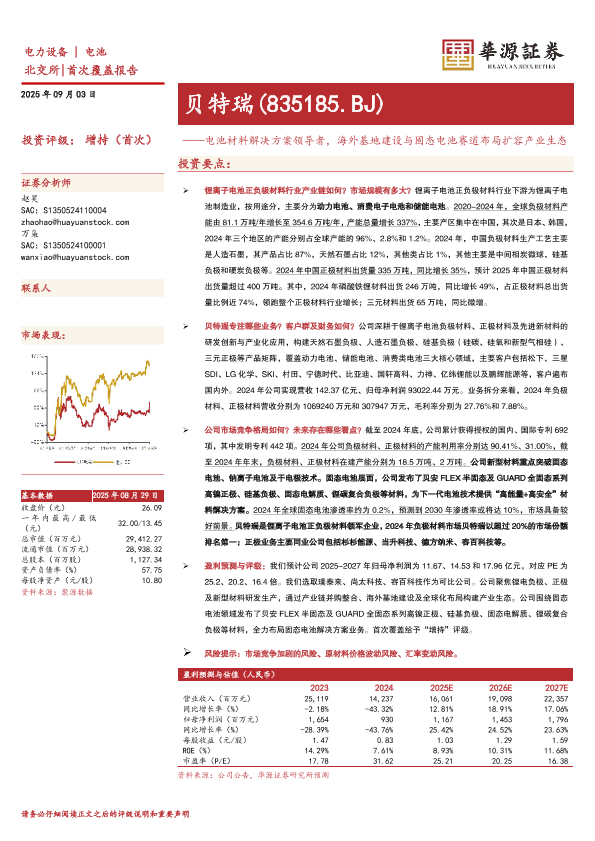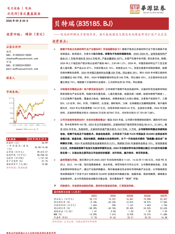 【华源证券】【202509】贝特瑞(835185)电池材料解决方案领导者,海外基地建设与固态电池赛道布局扩容产业生态-28页