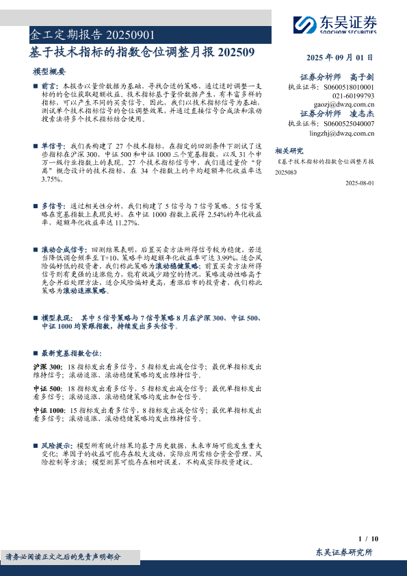 【东吴证券】【202509】金工定期报告:基于技术指标的指数仓位调整月报202509-10页
