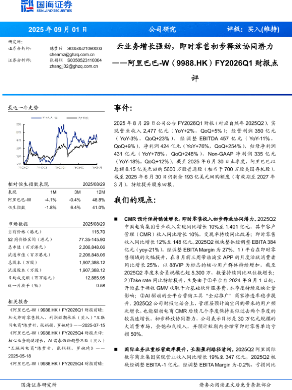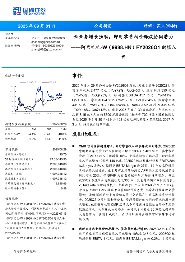 【国海证券】【202508】云业务增长强劲,即时零售初步释放协同潜力——阿里巴巴-W(9988.HK)FY2026Q1财报点评-12页