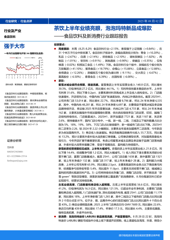 【爱建证券】【202509】食品饮料及新消费行业跟踪报告:茶饮上半年业绩亮眼,泡泡玛特新品成爆款-12页