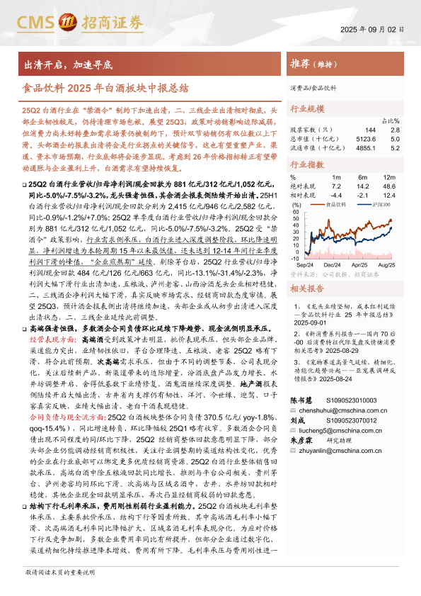 【海通证券】【202509】食品饮料行业2025年白酒板块中报总结:出清开启,加速寻底-15页