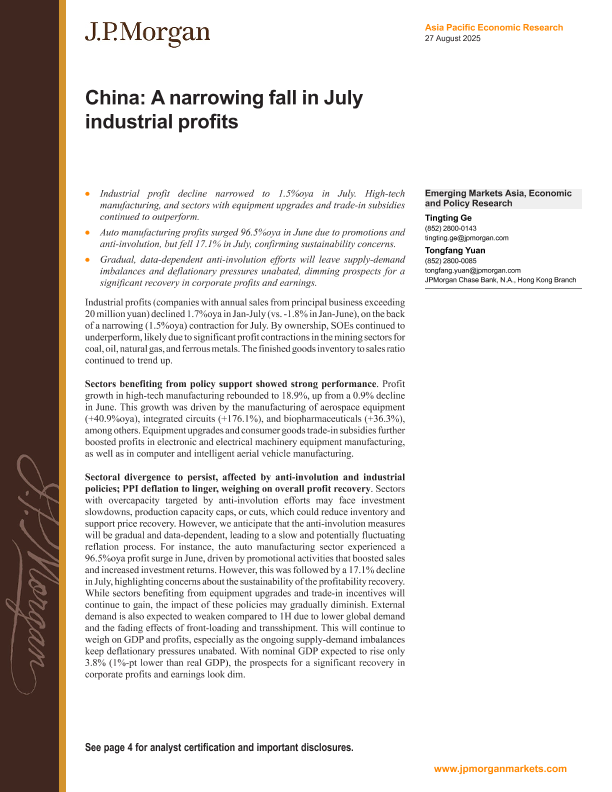 【J P M O R G A N】【202508】China A narrowing fall in July industrial profits-7页